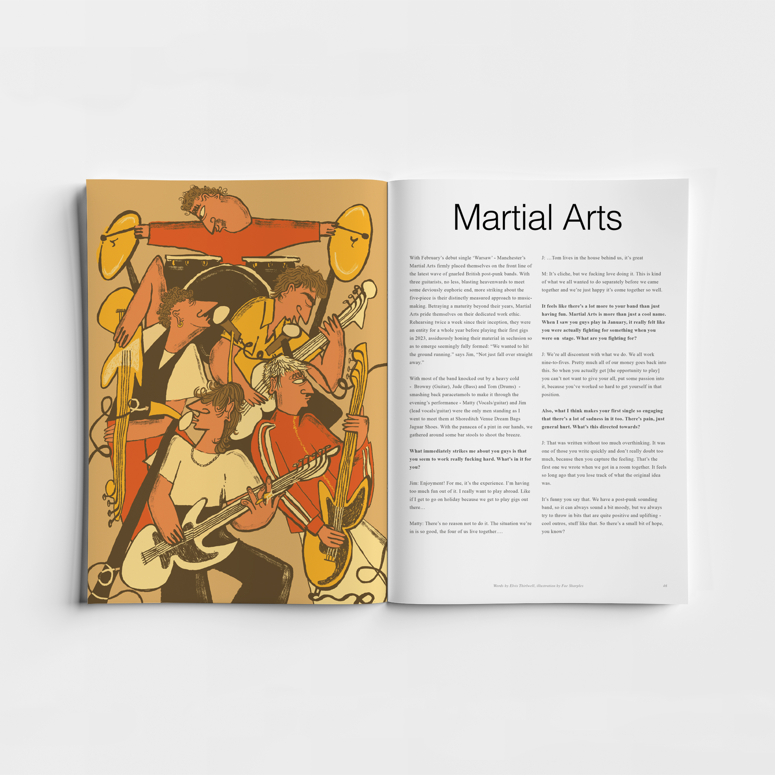 Another first time chat inside the magazine is with Manchester’s Martial Arts. Since impressing at our London club night, and releasing debut single ‘Warsaw’, we thought it was important to know more. Enjoyment and playing loud are at the heart of things for this band.